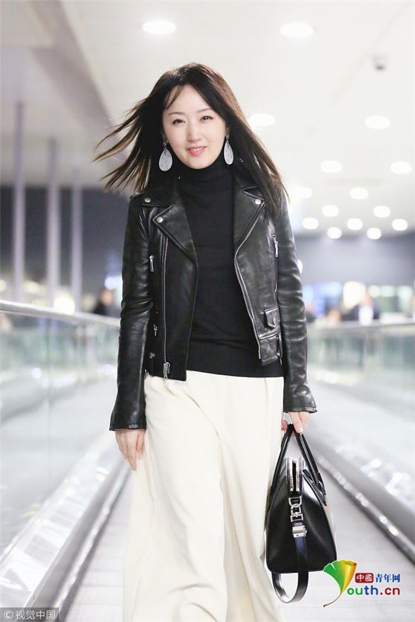 12月9日,上海,楊鈺瑩現(xiàn)身上海虹橋機場,她身著黑色皮衣的她搭配白色直筒褲,手提大牌包優(yōu)雅知性,長發(fā)披肩溫柔甜美似少女,見跟拍主動揮手示好,保養(yǎng)得當?shù)乃笮阊┌准∧w,不顯年紀!