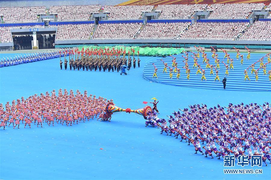 12月10日,廣西壯族自治區(qū)成立60周年慶祝大會(huì)在廣西體育中心隆重舉行。這是慶祝大會(huì)上的群眾文藝表演。 新華社記者 李鑫 攝