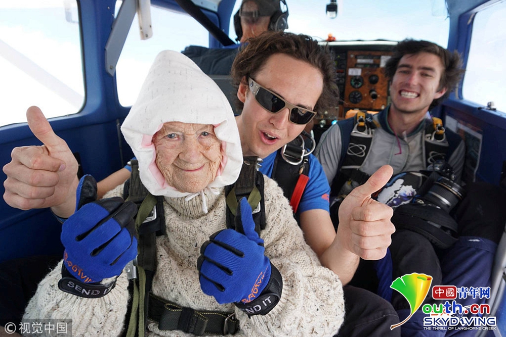 澳洲102歲奶奶玩高空跳傘 背后原因很暖心