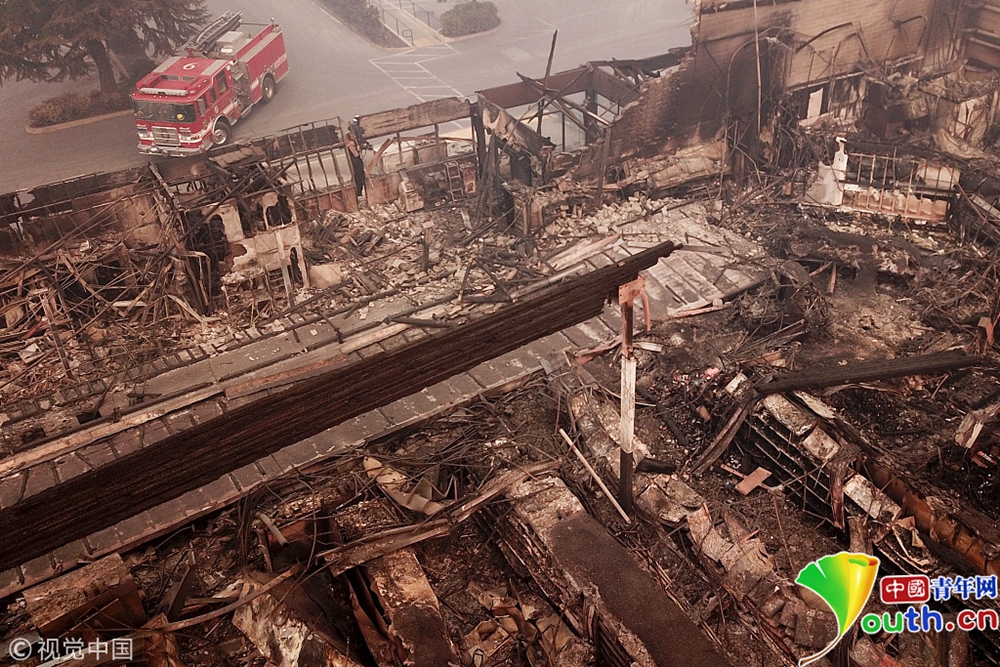 天堂變“地獄” 航拍加州山火肆虐社區(qū)似墓地