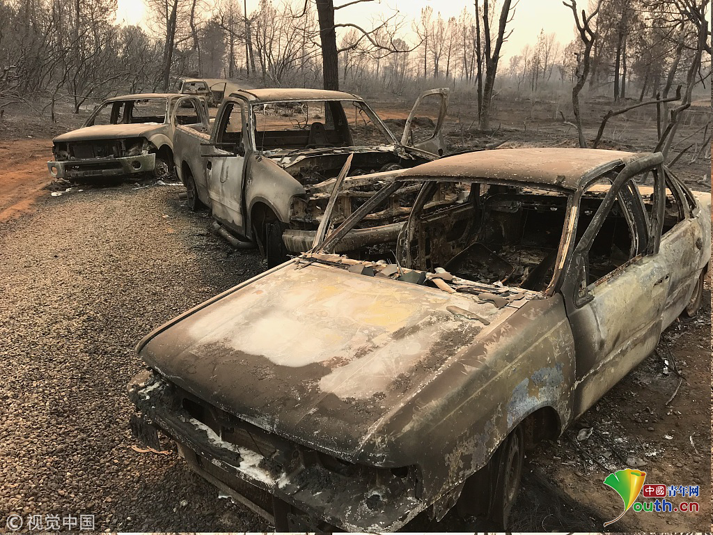 聲明說,警方調(diào)查人員自8日起接到多起報告說山火在天堂鎮(zhèn)造成人員死亡,但由于火勢猛烈,調(diào)查工作難以展開。目前,調(diào)查人員已在天堂鎮(zhèn)一輛被燒毀的汽車中發(fā)現(xiàn)5名死者,確定死因是在乘車逃離過程中被山火吞噬。