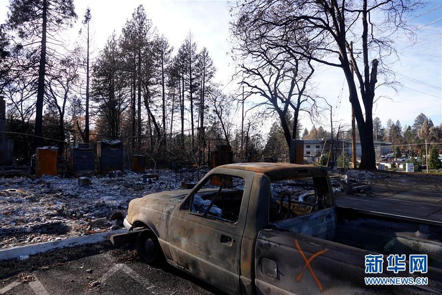 這是12月7日在美國(guó)加利福尼亞州比尤特縣天堂鎮(zhèn)拍攝的山火廢墟。 新華社記者吳曉凌攝