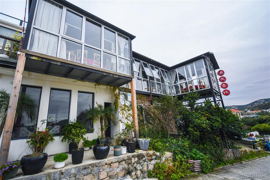 12月16日,“迷嶼?!泵袼夼魅藦堒坝柙诿袼薮筇妹β?。該民宿臨海而建,環(huán)境優(yōu)美,吸引很多游客前來休閑住宿。 新華社記者 徐昱 攝