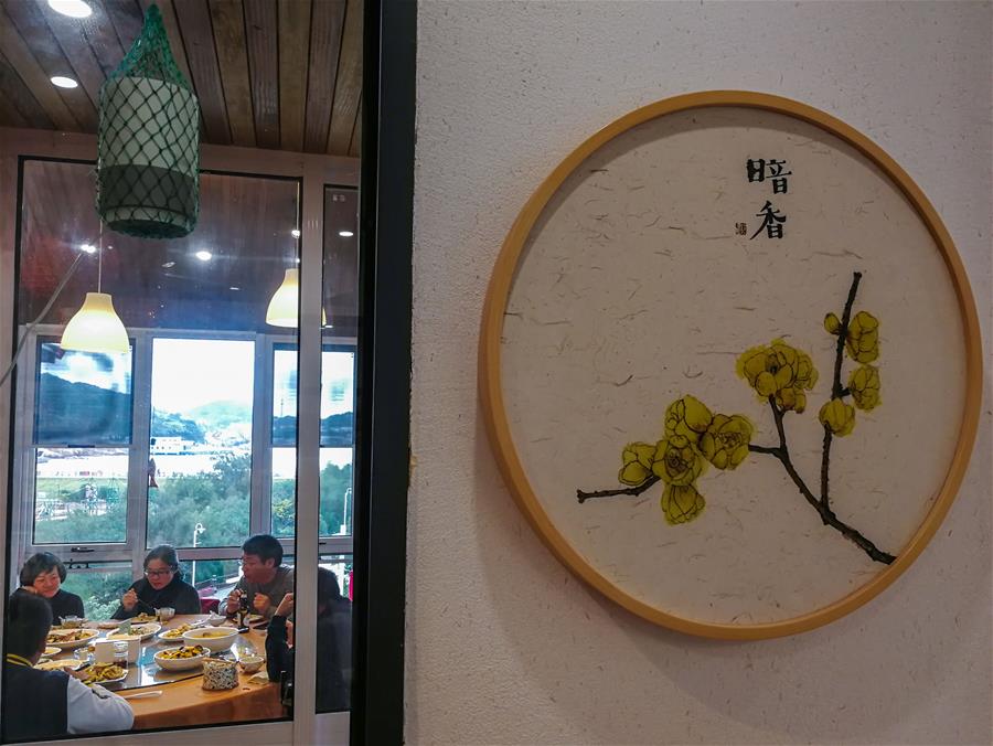 12月15日,客人在朱家尖烏石塘“漁夫客?!泵袼薨鼛麅扔貌停撁袼抻泻>胺?間,餐飲包廂8個。 新華社記者 徐昱 攝