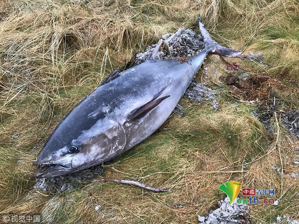 英國(guó)沙灘現(xiàn)2米長(zhǎng)巨型藍(lán)鰭金槍魚