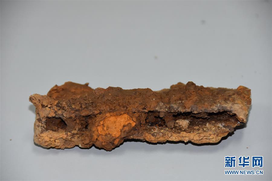 吳山祭祀遺址內(nèi)出土的鐵鍤農(nóng)具(12月7日攝)。 新華社記者都紅剛攝