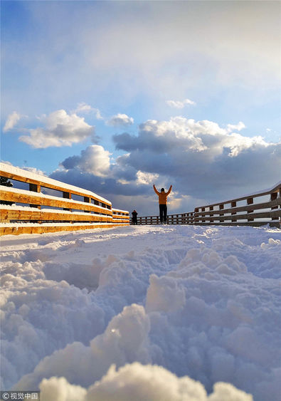 12月19日,小鳥在布達(dá)拉宮廣場上的雪地里撒歡。 12月18日,西藏拉薩市迎來今年入冬以來的首場降雪。19日清晨,拉薩雪后初霽,處處銀裝素裹,盡顯雪域高原之美。 新華社記者覺果攝