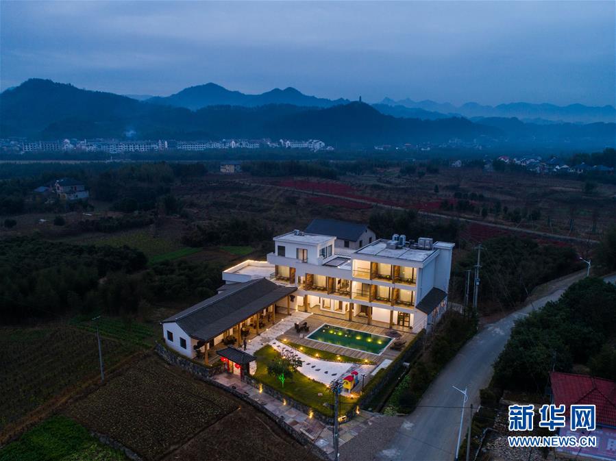夜色中的民宿“初憶小院”(12月19日攝)。該民宿是河橋鎮(zhèn)“90后”女孩章淑貞開辦的,民宿融入了大量的現(xiàn)代建筑設(shè)計(jì)風(fēng)格,深受年輕人的喜愛。 新華社記者 徐昱 攝