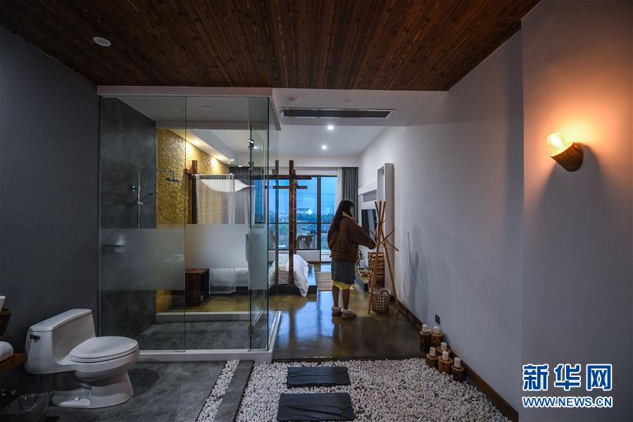 12月19日,章淑貞在民宿“初憶小院”房間內(nèi)整理內(nèi)飾。該民宿是河橋鎮(zhèn)“90后”女孩章淑貞開辦的,民宿融入了大量的現(xiàn)代建筑設(shè)計(jì)風(fēng)格,深受年輕人的喜愛。 新華社記者 徐昱 攝