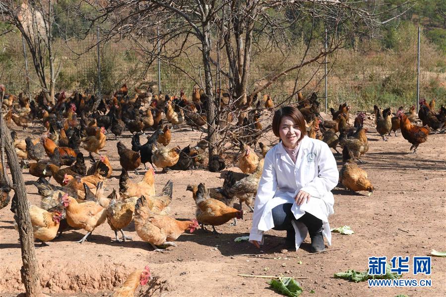 12月17日,馬關(guān)琴在自己的土雞放養(yǎng)基地?!安杌ㄏ勺印瘪R關(guān)琴以飼養(yǎng)茶花土雞而得名。10年前,從昆明市畢業(yè)的馬關(guān)琴沒有選擇留在城市工作,帶著自己所學(xué)的獸醫(yī)專業(yè)知識回到大山深處的家鄉(xiāng)創(chuàng)業(yè)養(yǎng)殖“茶花土雞”。2015年,馬關(guān)琴成立養(yǎng)殖專業(yè)合作社,義務(wù)為群眾培訓(xùn)養(yǎng)殖技術(shù)。2017年10月,拖布卡鎮(zhèn)“茶花土雞”扶貧基地成立,年出欄土雞10余萬只,帶動建檔立卡貧困戶1000余戶脫貧增收。 新華社記者 楊宗友 攝