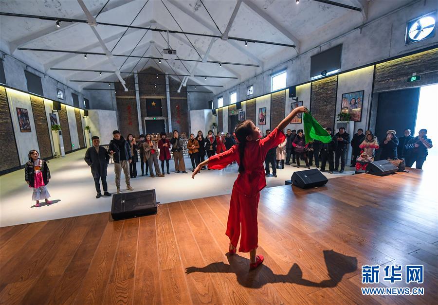 12月20日,學(xué)生在舊糧倉(cāng)改建的鄉(xiāng)村電影院內(nèi)排練鄉(xiāng)村春晚的節(jié)目。 新華社記者 徐昱 攝