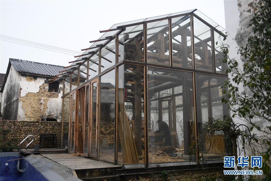 12月21日,工人在桐廬縣江南鎮(zhèn)深澳村修繕改造一間古宅。深澳村有保存完整的古建筑群落,常年吸引大批游客參觀。新華社記者黃宗治攝