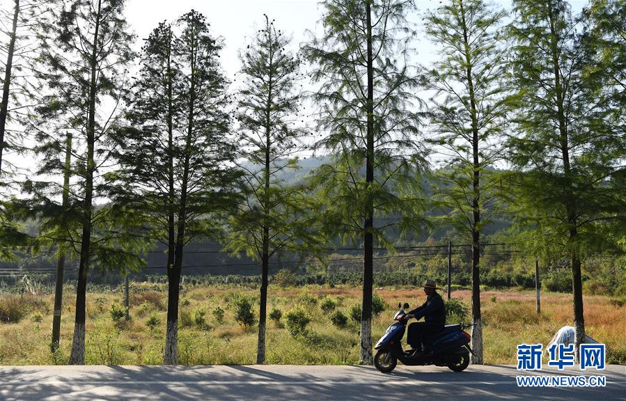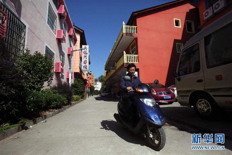 舒港發(fā)騎著電動車行進(jìn)在村子里(10月28日攝)。