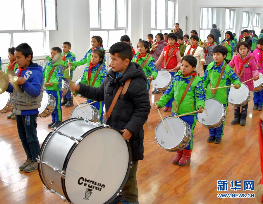 烏什·衢州小學鼓號隊成員在訓練(12月19日攝)。