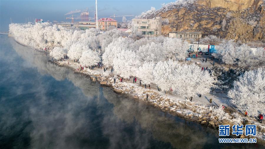 這是在吉林省吉林市豐滿區(qū)吉豐東路松花江畔拍攝的霧凇美景(12月12日無人機(jī)拍攝)。 新華社記者張楠攝