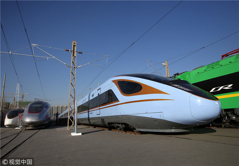 2018年12月24日,北京,中國(guó)鐵路科技創(chuàng)新成果展在國(guó)家鐵道試驗(yàn)中心舉行。新型復(fù)興號(hào)動(dòng)車組實(shí)車首次公開(kāi)亮相,現(xiàn)場(chǎng)體驗(yàn)乘車運(yùn)行。視覺(jué)中國(guó)