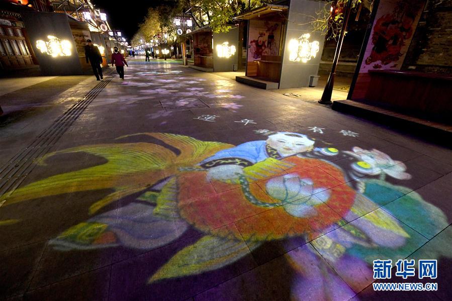 楊柳青年畫(huà)主題燈光布滿在天津楊柳青古鎮(zhèn)步行街上(12月4日攝)。 運(yùn)河穿城過(guò),古鎮(zhèn)草色新,千年畫(huà)鄉(xiāng)楊柳青自傳統(tǒng)中浸潤(rùn)出與眾不同的顏色。40年斗轉(zhuǎn)星移,這個(gè)沉淀千年的小鎮(zhèn),用別樣的風(fēng)姿講述了一個(gè)歷史與現(xiàn)在碰撞而出的改革“新”故事。 新華社記者岳月偉攝