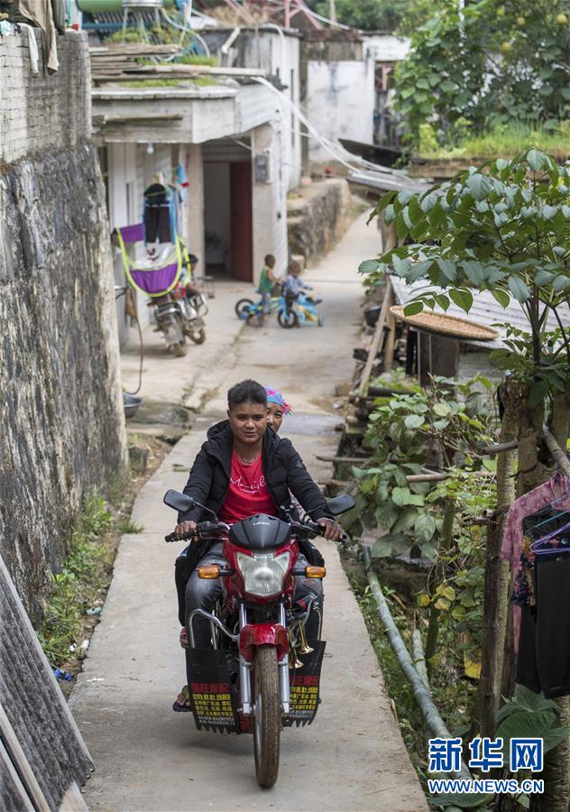 在云南省金平苗族瑤族傣族自治縣者米鄉(xiāng)地棚村小組,一名苦聰青年騎著摩托車(chē)出村(11月13日攝)。新華社記者 胡超 攝