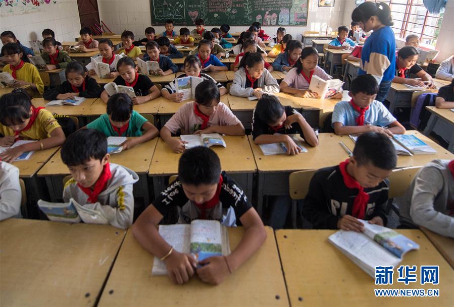 在云南省金平苗族瑤族傣族自治縣者米鄉(xiāng)中心小學(xué),孩子們?cè)诮淌依锷险n。云南省逐步在人口較少民族和“直過民族”聚居區(qū)實(shí)行從學(xué)前教育到高中階段的14年免費(fèi)教育(11月13日攝)。新華社記者 胡超 攝