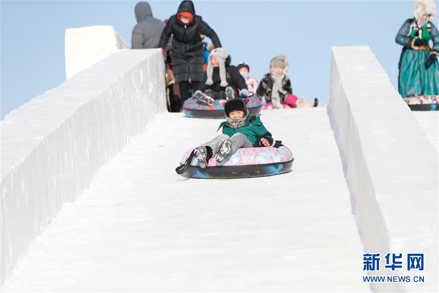 12月26日,小朋友在玩雪滑梯。 當日,內蒙古冰雪那達慕系列活動在呼倫貝爾市鄂溫克旗繼續(xù)進行,牧民歡聚一堂,參加各種賽事和趣味項目。 新華社記者 虞東升 攝