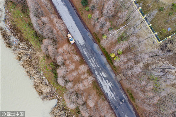 2018年12月27日,江蘇淮安,航拍京杭大運河淮安段冬日景色。吳揚/視覺中國