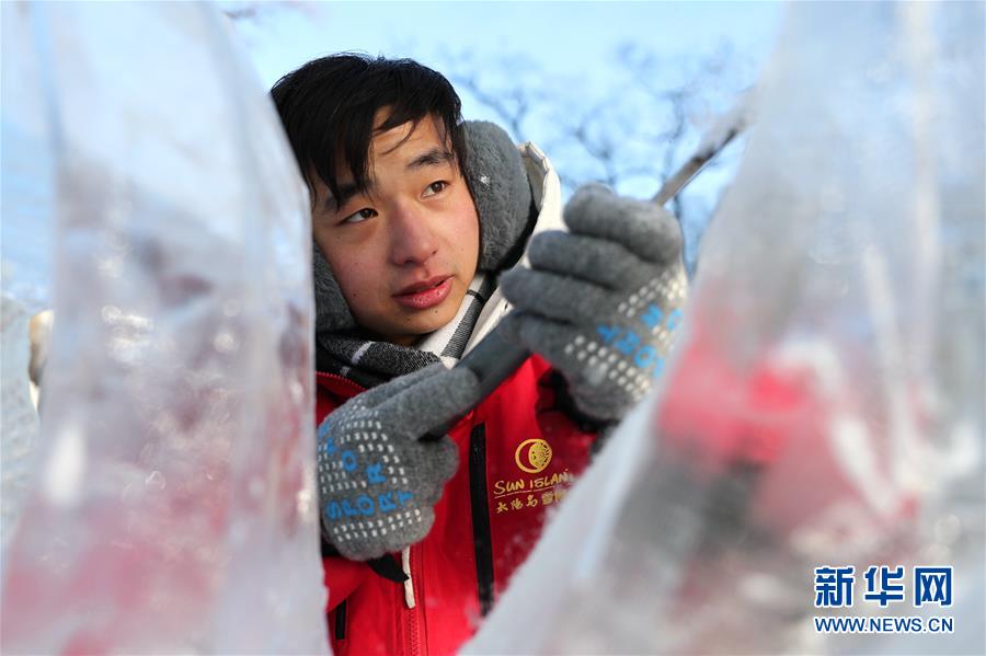 12月27日,選手在比賽中完善冰雕作品。 當(dāng)日,第十六屆黑龍江省大學(xué)生冰雕藝術(shù)設(shè)計(jì)創(chuàng)作大賽在哈爾濱兆麟公園落下帷幕,全省高校共有99支隊(duì)伍參賽。 新華社記者曹霽陽攝