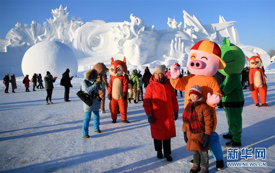 12月29日,在太陽(yáng)島雪博會(huì)園區(qū),游客在雪雕作品前留影。 當(dāng)日,第31屆哈爾濱太陽(yáng)島國(guó)際雪雕藝術(shù)博覽會(huì)正式開(kāi)園。本屆太陽(yáng)島雪博會(huì)以“歡樂(lè)雪博會(huì)·夢(mèng)幻雪域游”為主題,占地90萬(wàn)平方米,分為五大景區(qū)。 新華社記者 王建威 攝