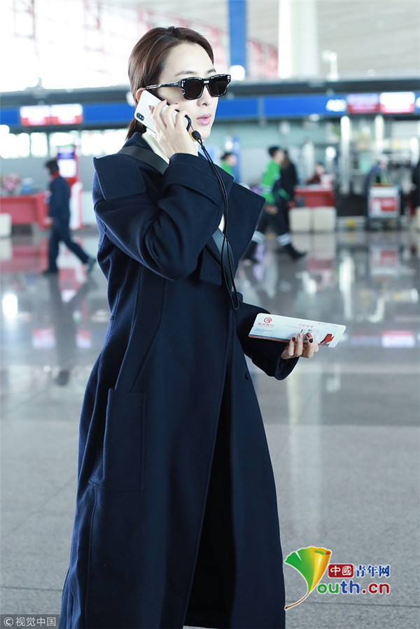 2019年1月7日,北京,馬蘇現(xiàn)身機場。她身穿黑色到腳大衣霸氣外露,架黑超涂紅唇似帥氣“女特工”。