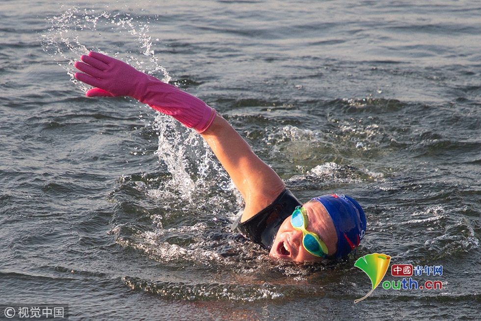 據(jù)了解,今年已經(jīng)是張敏石冬泳的第十個(gè)年頭,以前在老家磐石,他就曾組建過冬泳隊(duì),四年前剛到長(zhǎng)春便參加了這里的冬泳協(xié)會(huì),之所以邊游泳邊朗誦,其實(shí)是為了分散注意力,延長(zhǎng)在水中游泳的時(shí)間?!捌鋵?shí)我原來也沒想到要背詩(shī),但是每次下到水里后都堅(jiān)持不了多長(zhǎng)時(shí)間,因?yàn)樽约涸瓉硎窃u(píng)劇院的,對(duì)詩(shī)詞樂曲之類的多少有點(diǎn)底子,所以就琢磨著能不能靠背詩(shī)來分散下注意力,結(jié)果沒想到還挺管用的。以前在水里最多四五分鐘,現(xiàn)在待個(gè)十幾分鐘不是問題?!睆埫羰f,自己現(xiàn)在每天背誦的詩(shī)詞范圍很廣,像毛澤東、周恩來、朱德、郭沫若等都在內(nèi),在這么多詩(shī)詞中,他最喜歡的還是有濃重愛國(guó)味道的,“這樣的詞讀起來有感覺,在水里背著背著也就不覺得堅(jiān)持不住了?!?/p>
