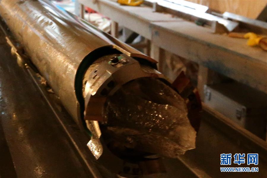 這是鉆取的2.8米長(zhǎng)冰芯(1月12日攝)。 新華社記者 劉詩平 攝