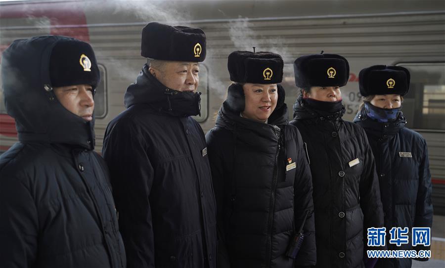 1月11日,在滿洲里火車站站臺,“金鑰匙”服務(wù)臺客運(yùn)員在嚴(yán)寒中等待列車進(jìn)站。