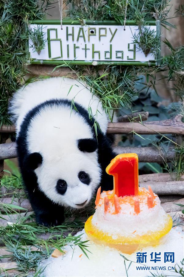 1月14日,在馬來(lái)西亞吉隆坡附近的馬來(lái)西亞國(guó)家動(dòng)物園,大熊貓寶寶過(guò)一歲生日。