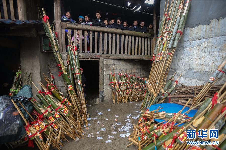 1月14日,人們?cè)趶V西融水苗族自治縣紅水鄉(xiāng)觀看蘆笙吹奏比賽。新華社記者 陳君清 攝
