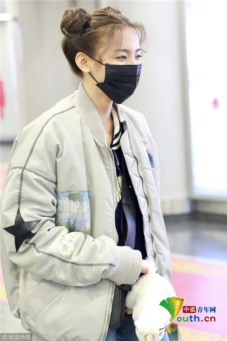 2019年1月14日,北京,楊超越現(xiàn)身機場。她扎哪吒頭活力十足,甩玩偶淘氣回眸,穿破洞褲露美腿,披面包服似自帶鼓風機。