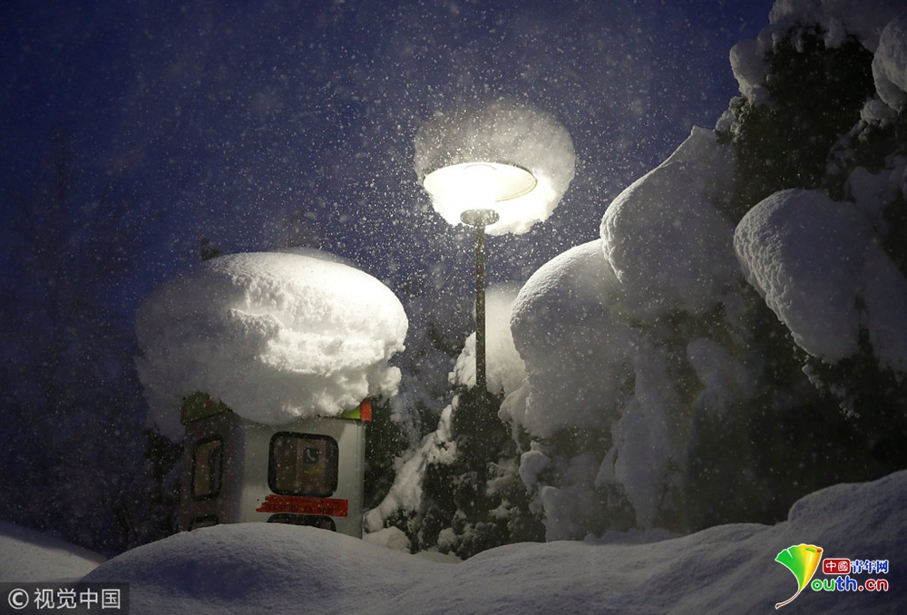 公交車站被積雪掩埋。