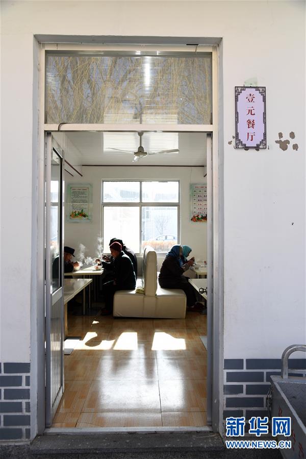 1月15日,村里的老人在“一元餐廳”內(nèi)吃午飯。新華社記者王凱攝