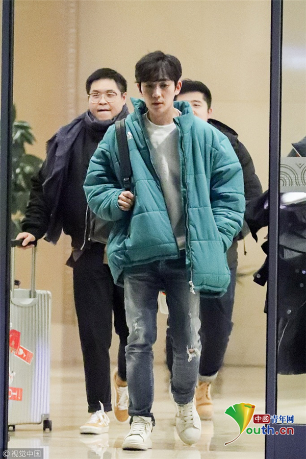 1月15日,北京,朱一龍現(xiàn)身機(jī)場。他穿綠色棉襖一路插兜保暖,搭配破洞褲潮范兒十足長腿搶鏡,打扮簡單毫無男神包袱,看鏡頭還一臉呆萌,但氣質(zhì)仍然出眾。