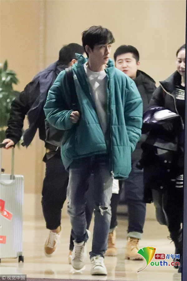1月15日,北京,朱一龍現(xiàn)身機(jī)場。他穿綠色棉襖一路插兜保暖,搭配破洞褲潮范兒十足長腿搶鏡,打扮簡單毫無男神包袱,看鏡頭還一臉呆萌,但氣質(zhì)仍然出眾。
