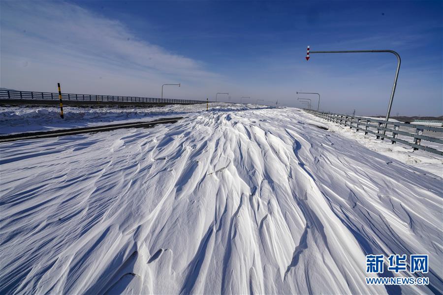 1月15日,在新疆瑪依塔斯風區(qū)內,大風將白雪吹到公路上。 瑪依塔斯風區(qū)位于新疆西北部額敏縣境內。這里東西風交替頻繁,一年大風天數(shù)超過150天,是世界上罕見的暴風雪災害地段。駐守在這里的新疆塔城公路管理局額敏分局瑪依塔斯應急保障基地,近年來連續(xù)裝備拋雪機等冰雪搶險救災裝備,有力地保障了這條道路的交通安全。 新華社記者趙戈攝