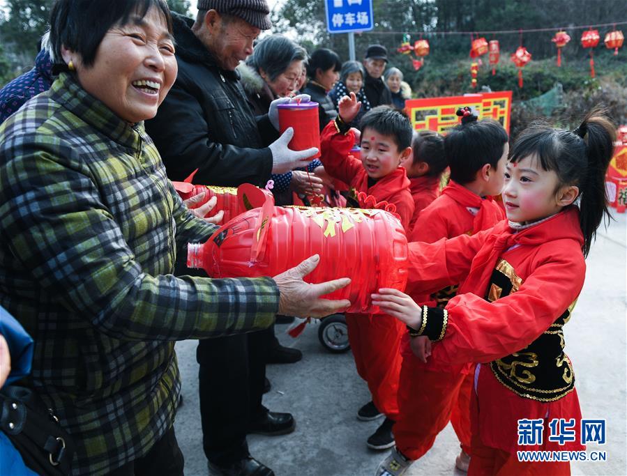 1月16日,孩子們把用廢舊物品制作的節(jié)日花燈送給村民。 臨近春節(jié),浙江省長興縣開發(fā)區(qū)中心幼兒園的老師和孩子們來到長興縣太湖街道下屬的新塘村,為村民表演文藝節(jié)目,用喜慶的傳統(tǒng)舞蹈營造節(jié)日氣氛。另外孩子們還用紙盒、瓶子、彩色包裝紙等廢舊物品制作了環(huán)保花燈,送給村民,倡導(dǎo)低碳環(huán)保的節(jié)日新風(fēng)。 新華社記者 徐昱 攝