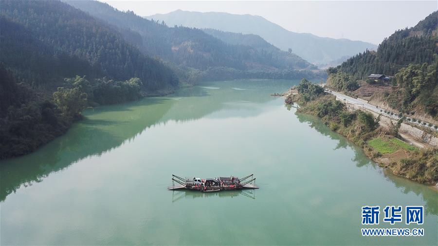 1月22日,渡輪在都柳江上行進(jìn)(無(wú)人機(jī)航拍)。 新華社記者 歐東衢 攝