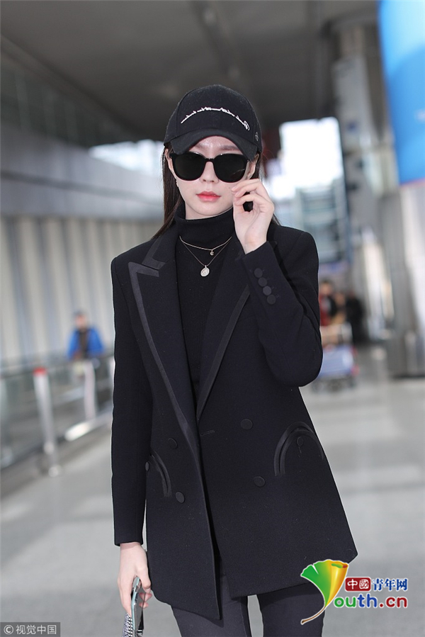 沈夢(mèng)辰全黑look又颯又美 黑超遮面甜妹變酷girl