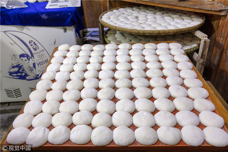 2019年1月26日,重慶中山古鎮(zhèn),880桌“千米長(zhǎng)宴”5萬(wàn)人共品年味。街坊們?cè)陬^天就開始準(zhǔn)備各種菜肴與小吃。