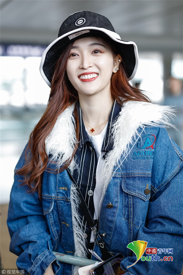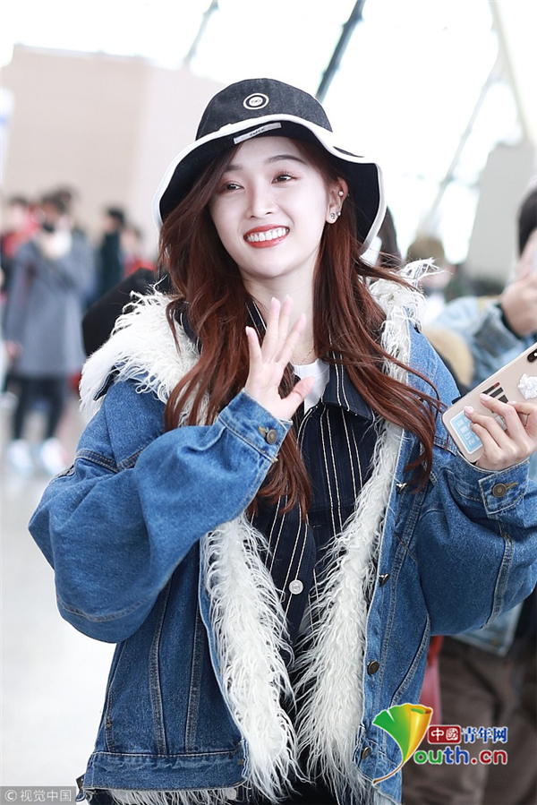 2月2日,上海,吳宣儀頭戴帽子身穿一襲牛仔服現(xiàn)身機(jī)場(chǎng) 。她自提大包回家過(guò)年 ,獲粉絲拜年祝福 ,吐舌狂賣(mài)萌。