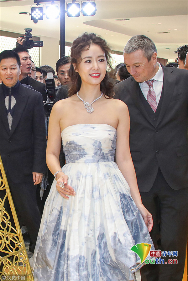 林心如穿抹胸裙秀香肩 淺笑盈盈女人味十足