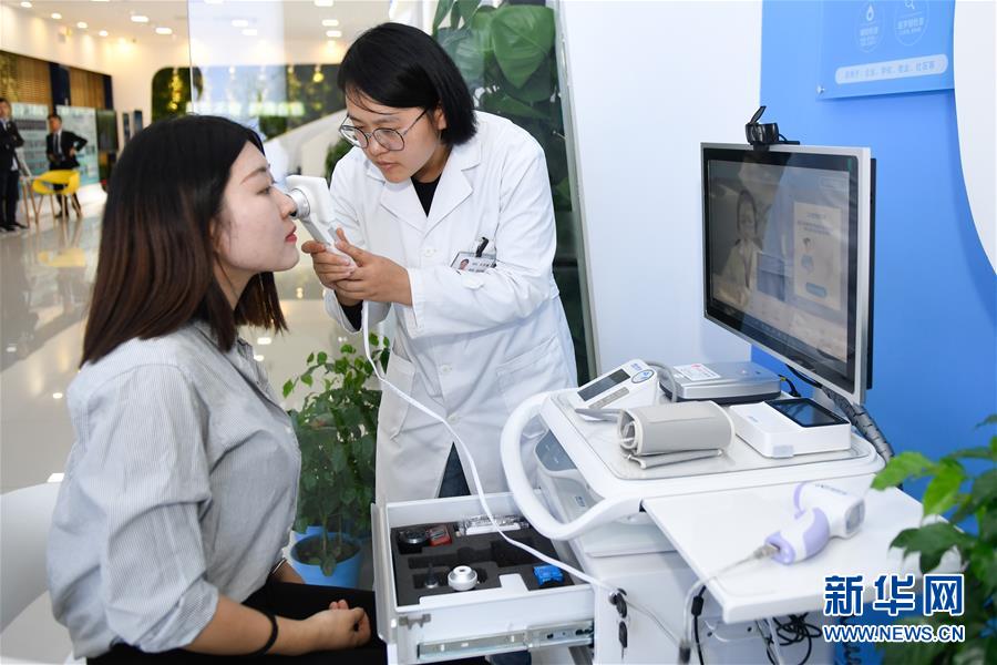 11月6日,參觀者在烏鎮(zhèn)互聯(lián)網(wǎng)醫(yī)院體驗(yàn)“智能醫(yī)務(wù)室”的體檢功能。據(jù)了解,“智能醫(yī)務(wù)室”由智能移動(dòng)醫(yī)療一體機(jī)、智能藥柜以及一系列檢查設(shè)備組成,根據(jù)健康檔案和檢查結(jié)果,視頻連接家庭醫(yī)生就能解決常見的醫(yī)療健康問題。 新華社記者黃宗治攝