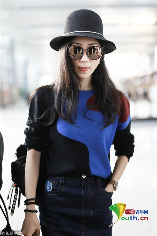 韓雪身穿拼色毛衣造型時(shí)髦 盡顯優(yōu)雅名媛范