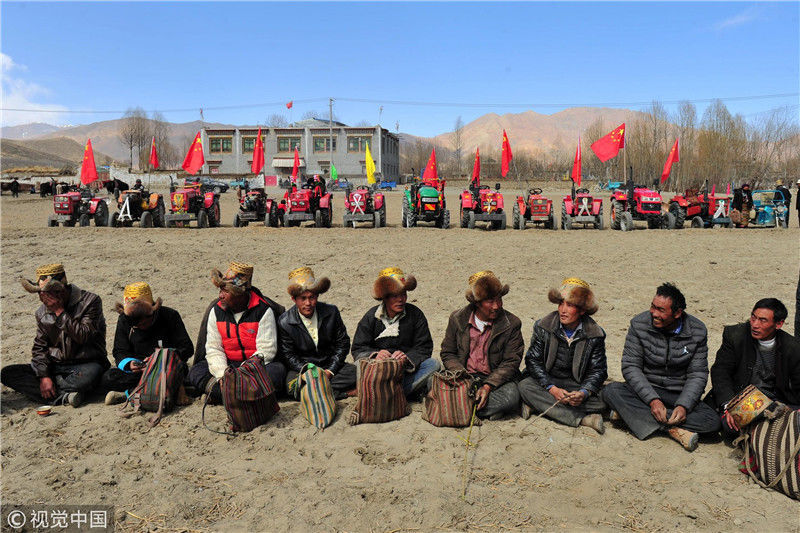 3月16日拍攝的拉薩市達(dá)孜區(qū)唐嘎鄉(xiāng)開(kāi)耕儀式現(xiàn)場(chǎng)。 當(dāng)日,西藏各地男女老幼身著節(jié)日盛裝,駕著一輛輛由彩旗、花朵裝扮一新的拖拉機(jī),涌向待墾的農(nóng)田,載歌載舞迎來(lái)一年一度的開(kāi)耕儀式。 新華社記者 張汝鋒 攝