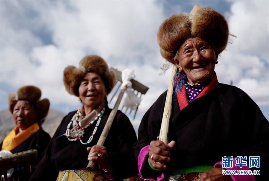 3月16日,山南市乃東區(qū)門中崗村村民在開(kāi)耕儀式上。 當(dāng)日,西藏各地男女老幼身著節(jié)日盛裝,駕著一輛輛由彩旗、花朵裝扮一新的拖拉機(jī),涌向待墾的農(nóng)田,載歌載舞迎來(lái)一年一度的開(kāi)耕儀式。 新華社記者 覺(jué)果 攝