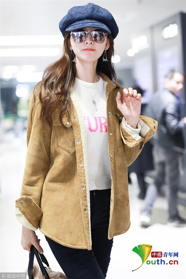 林志玲毛衣配破洞仔褲秀美腿 對鏡甜笑溫柔揮手